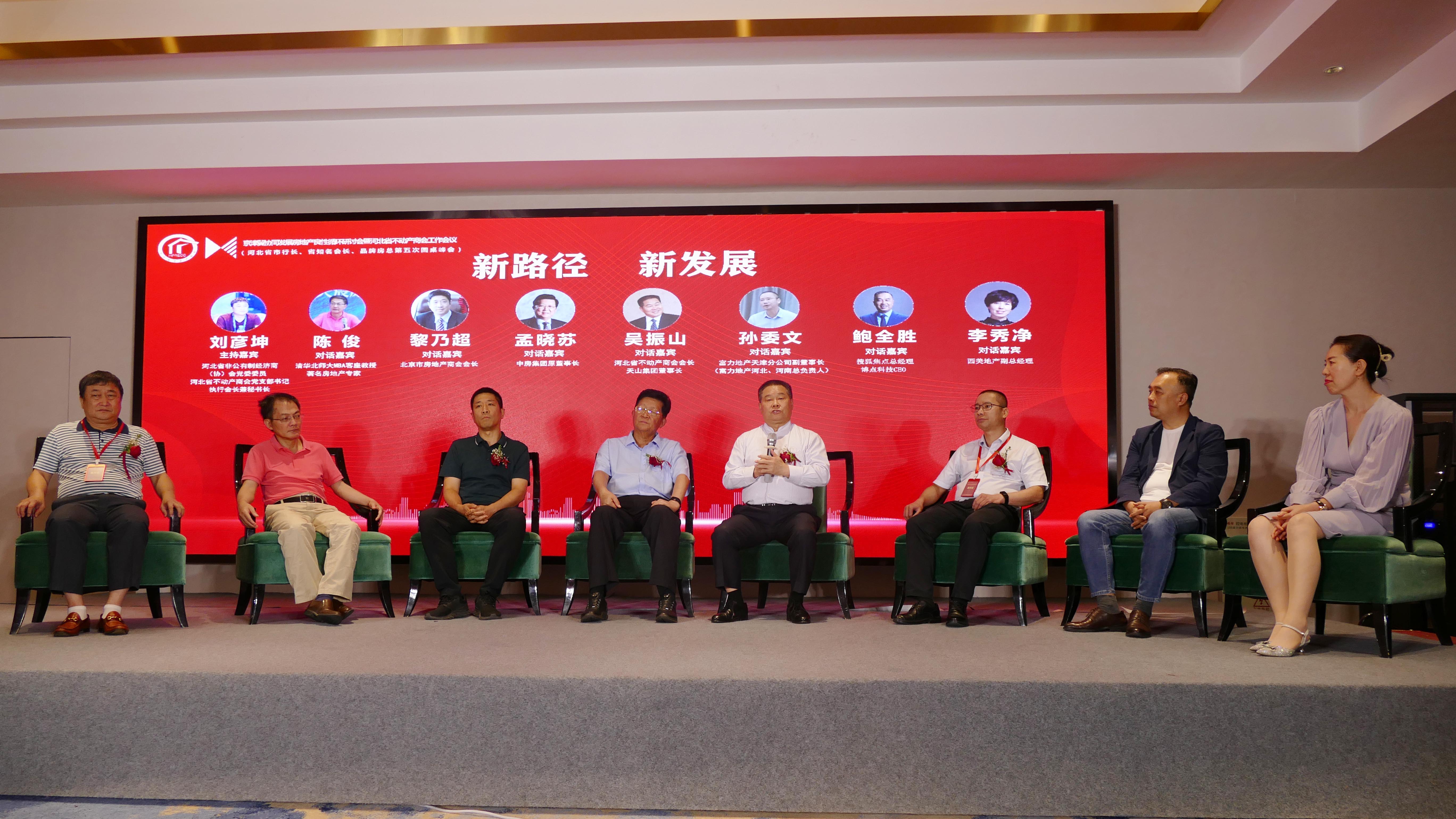 会上,吴振山会长向新任常务副会长和副会长颁发证牌;中房集团原董事长孟晓苏作新形势、新发展《稳经济就要稳住房地产》主题演讲;清华北师大MBA客座教授、著名房地产专家陈俊作《稳经济与京津冀房地产良性循环之路》演讲;刘彦坤主持了由孟晓苏、吴振山、黎乃超、孙委文、李秀净、鲍全胜、陈俊组成的房地产板块领袖 “新路径、新发展”主题对话。